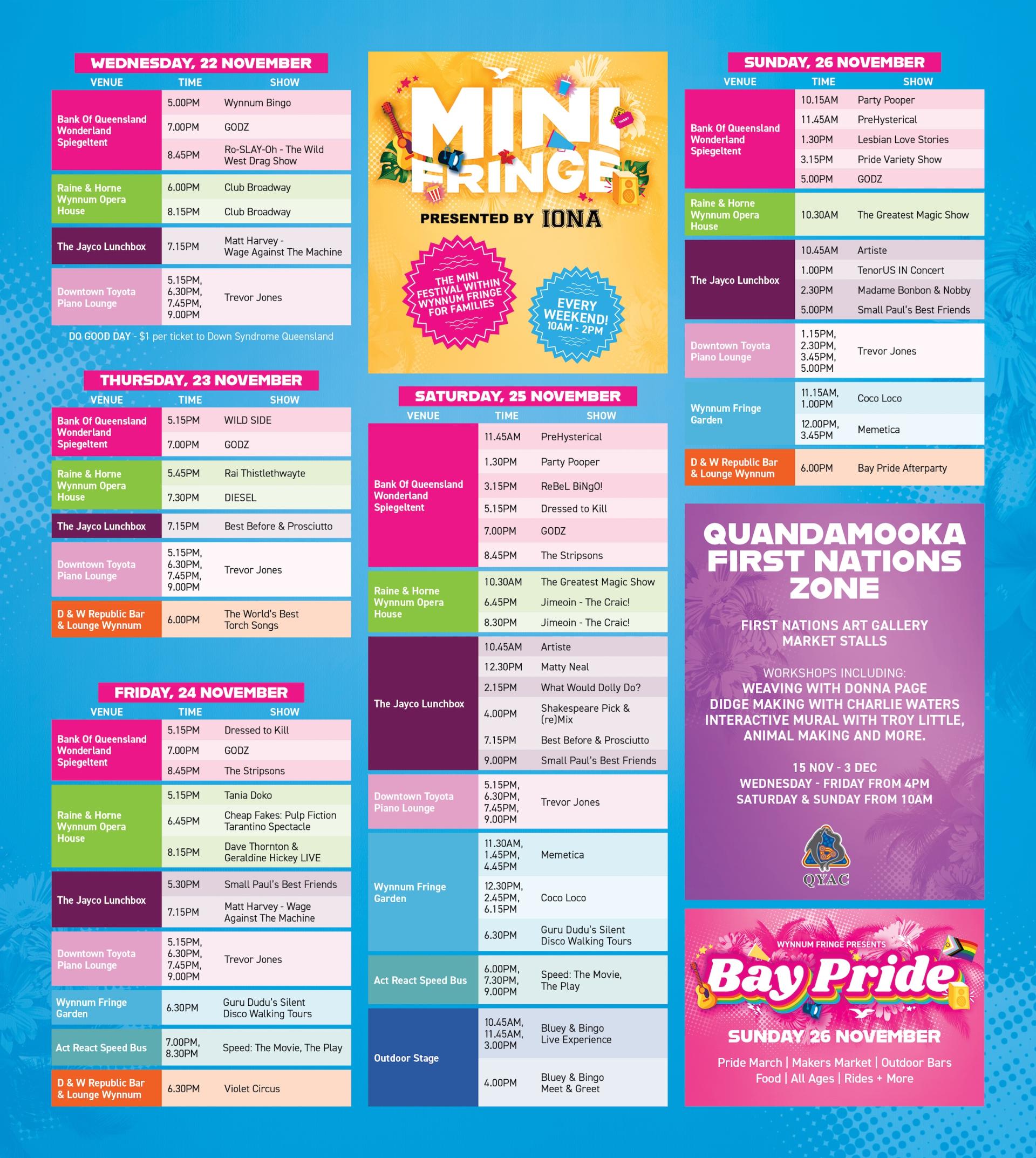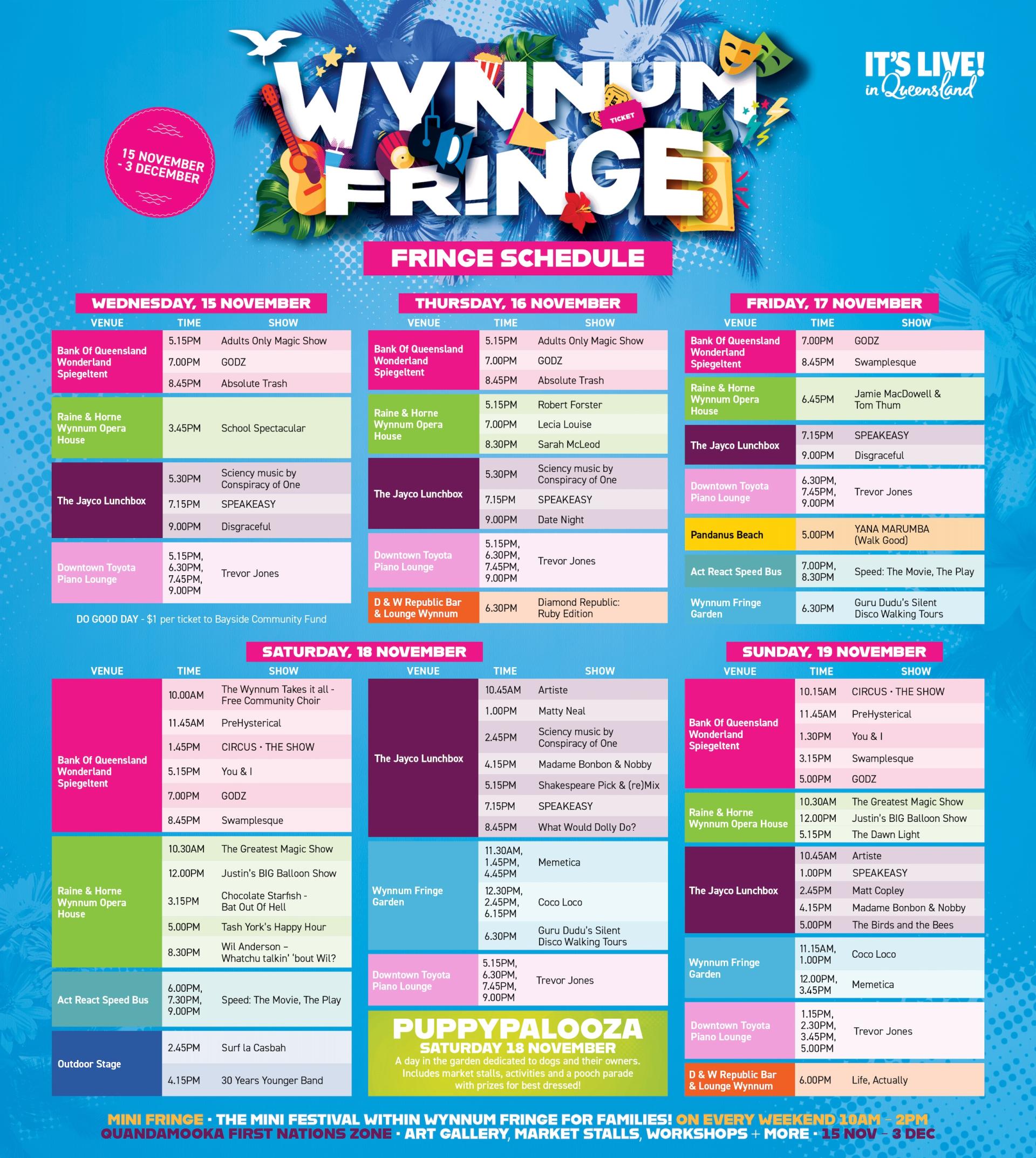 The winner will be announced at the Rock the Bay concert on Sunday 3 December - the last day of this year's Wynnum Fringe Festival!