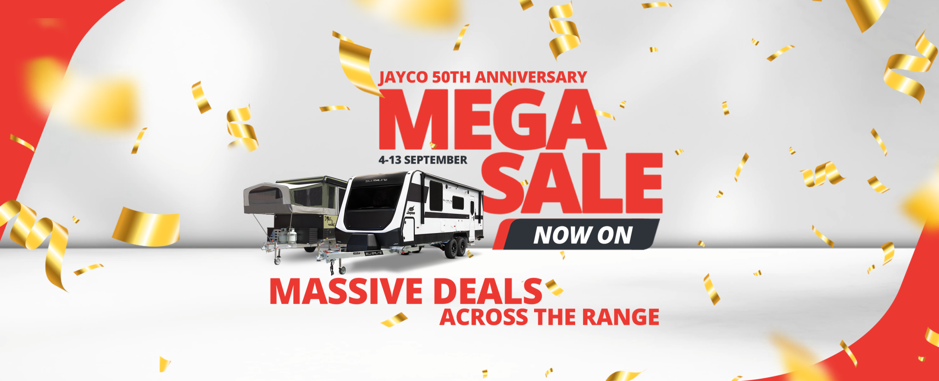 Join the celebration as Jayco marks 50 years of Aussie adventure with unbeatable deals across our entire range—including Campers, Pop Tops, Caravans, and so much more!
