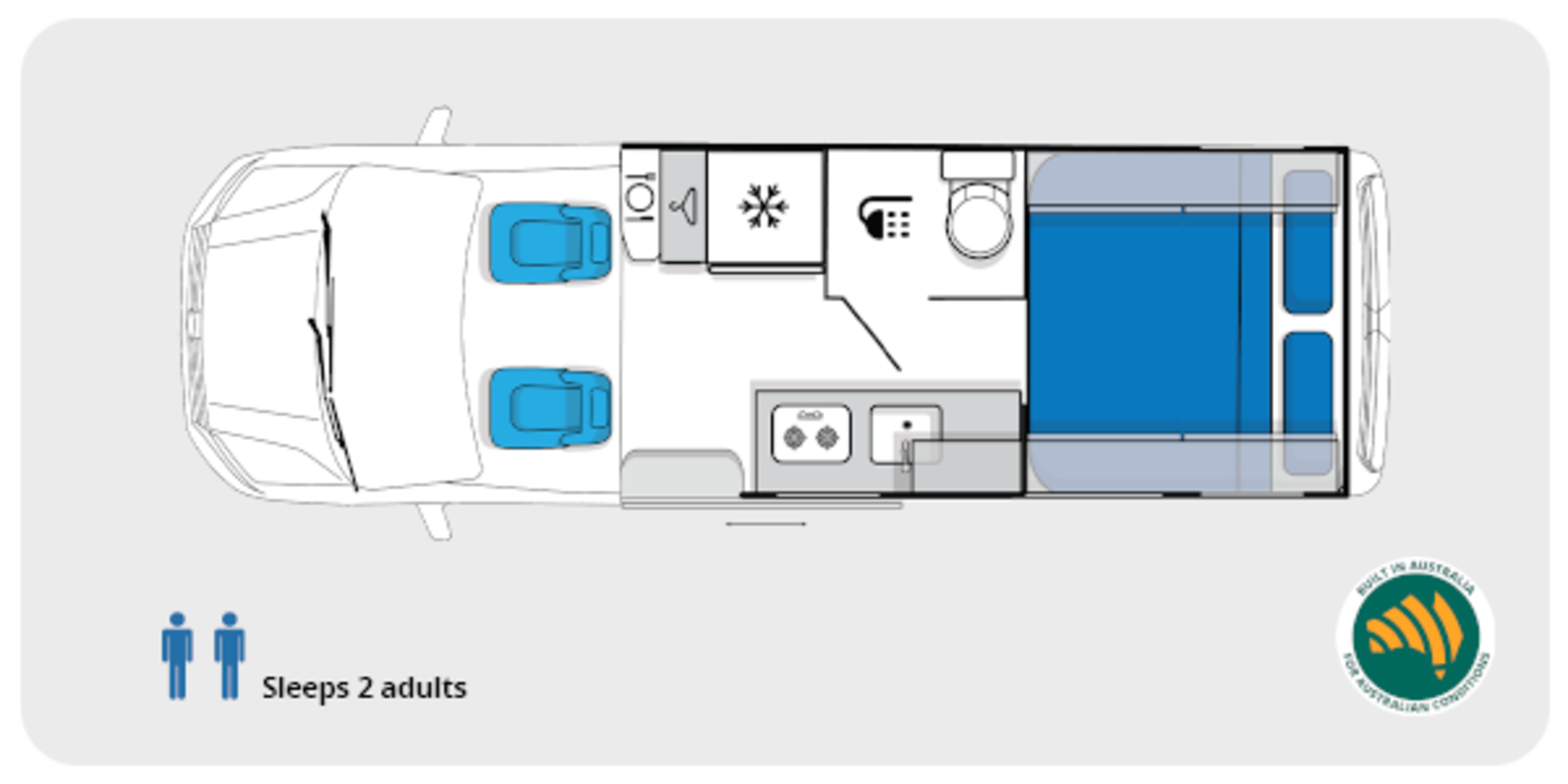 We’ve packed this premium van with every single comfort you could wish for: a private ensuite for total independence, a gourmet kitchen to fuel your travels, and powerful air conditioning to beat the heat. Plus, with the integrated solar power system and cutting edge entertainment system, you’re completely self-sufficient and ready for anything.
