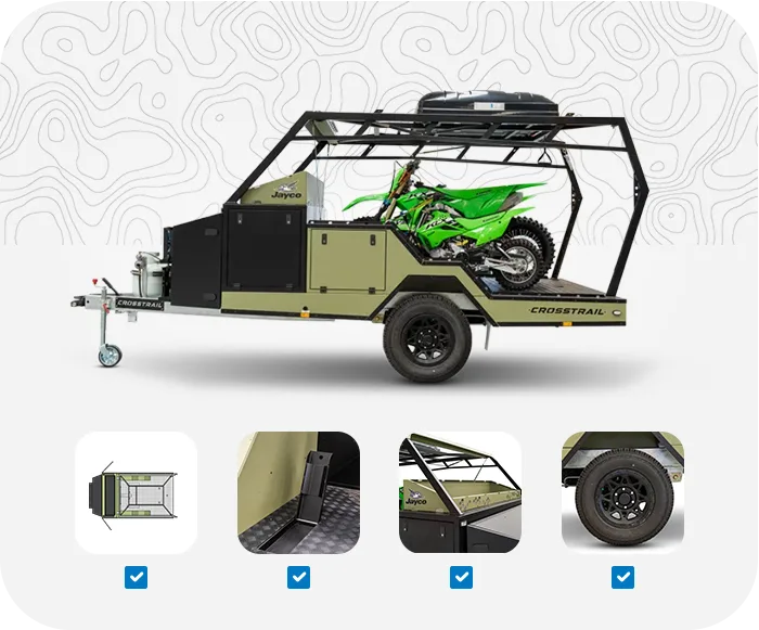 The new Jayco Crosstrail is your ultimate companion for adventure-fueled weekends—and a hard-working hauler during the week. Designed and built right here in Australia, this versatile toy hauler features a lightweight, corrosion-resistant aluminium body and a hot-dipped galvanised chassis—purpose-built to carry bikes, quads, tools, and more.